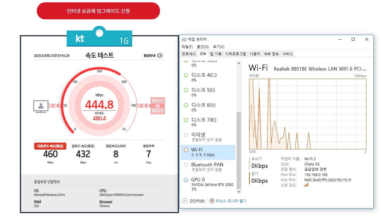 KT1기가 인터넷을 사용중이구요