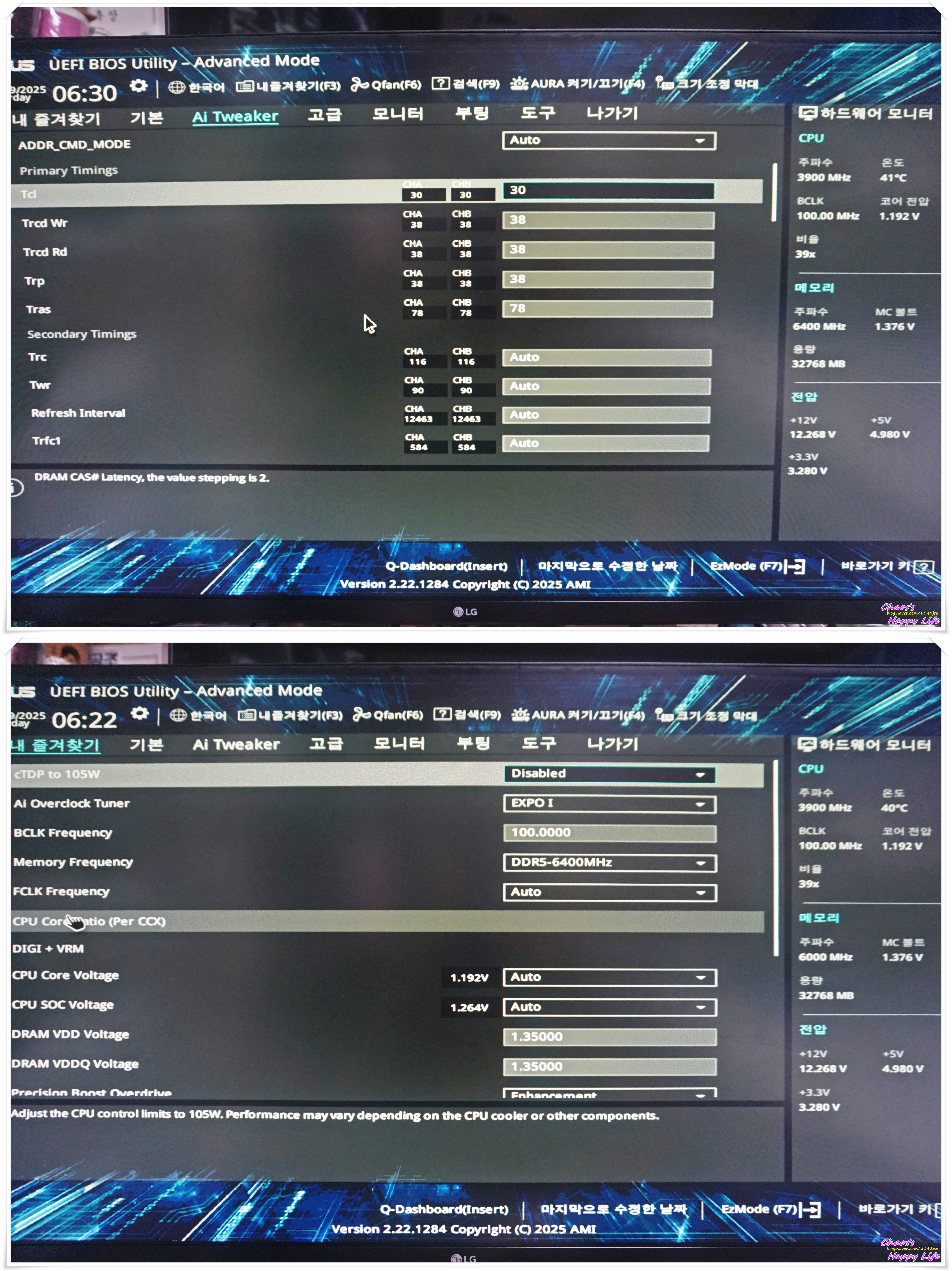 수동으로 램타이밍 설정을 해보았습니다.