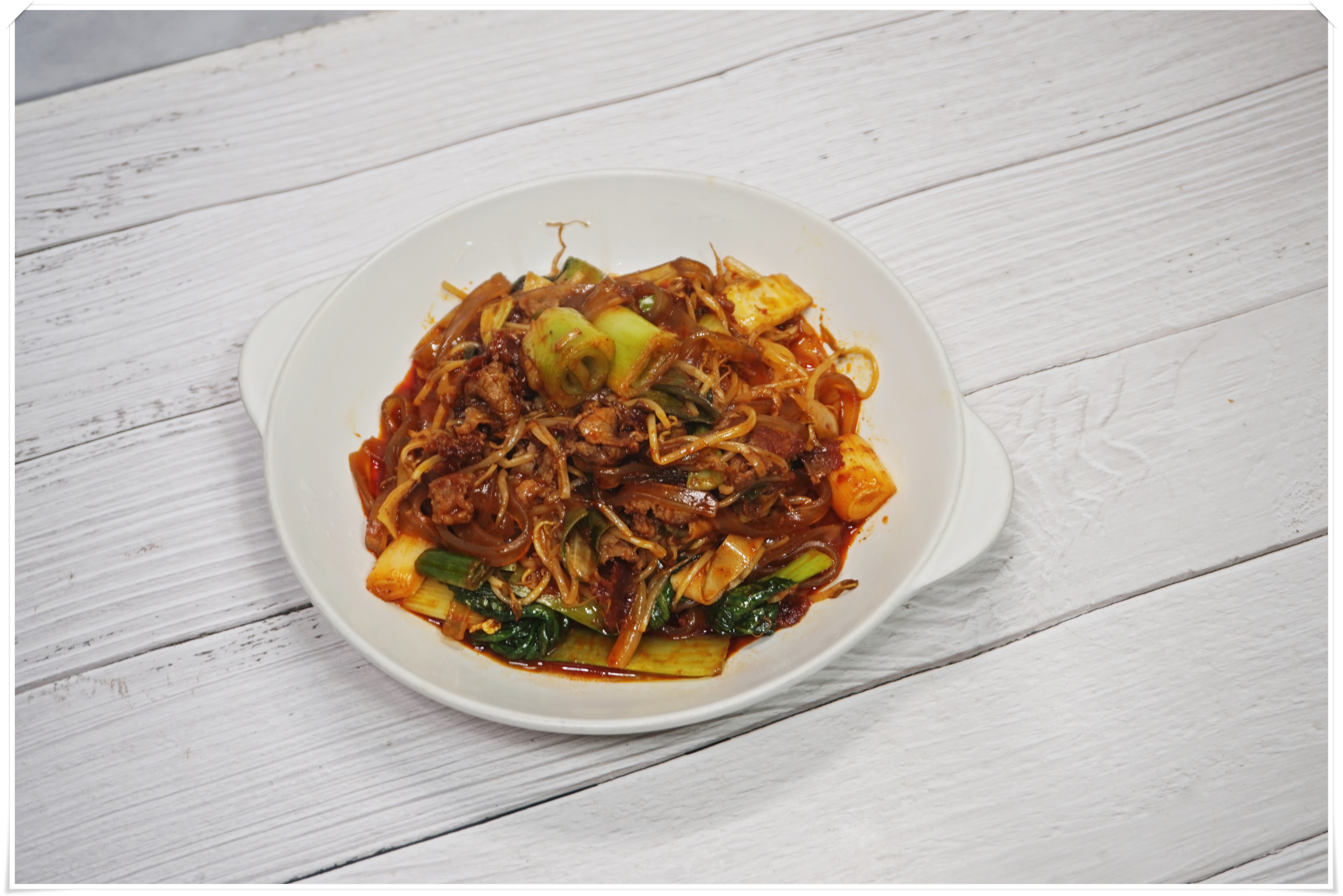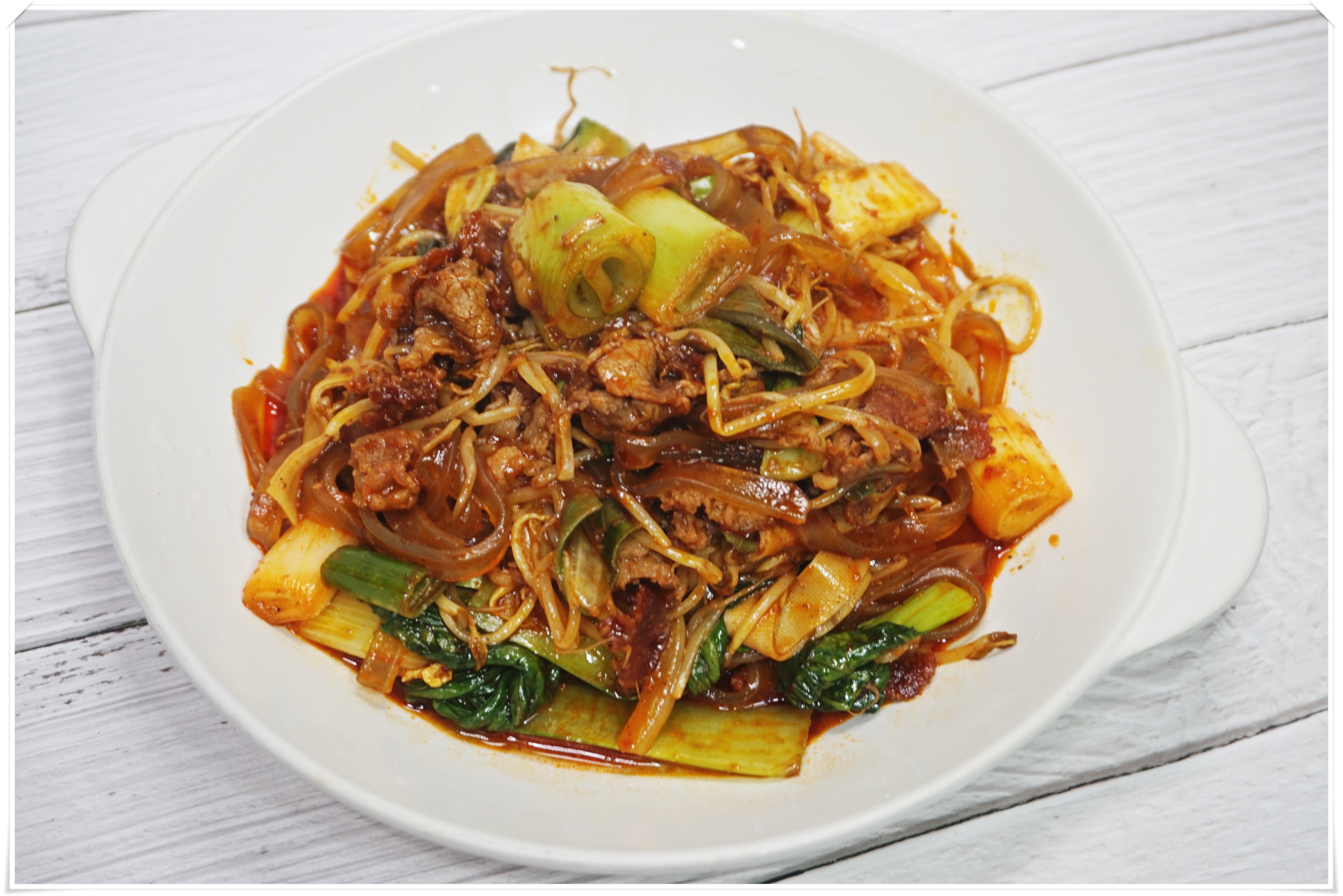 두부피,납작당면,숙주를 넣고 1분간 볶아준뒤