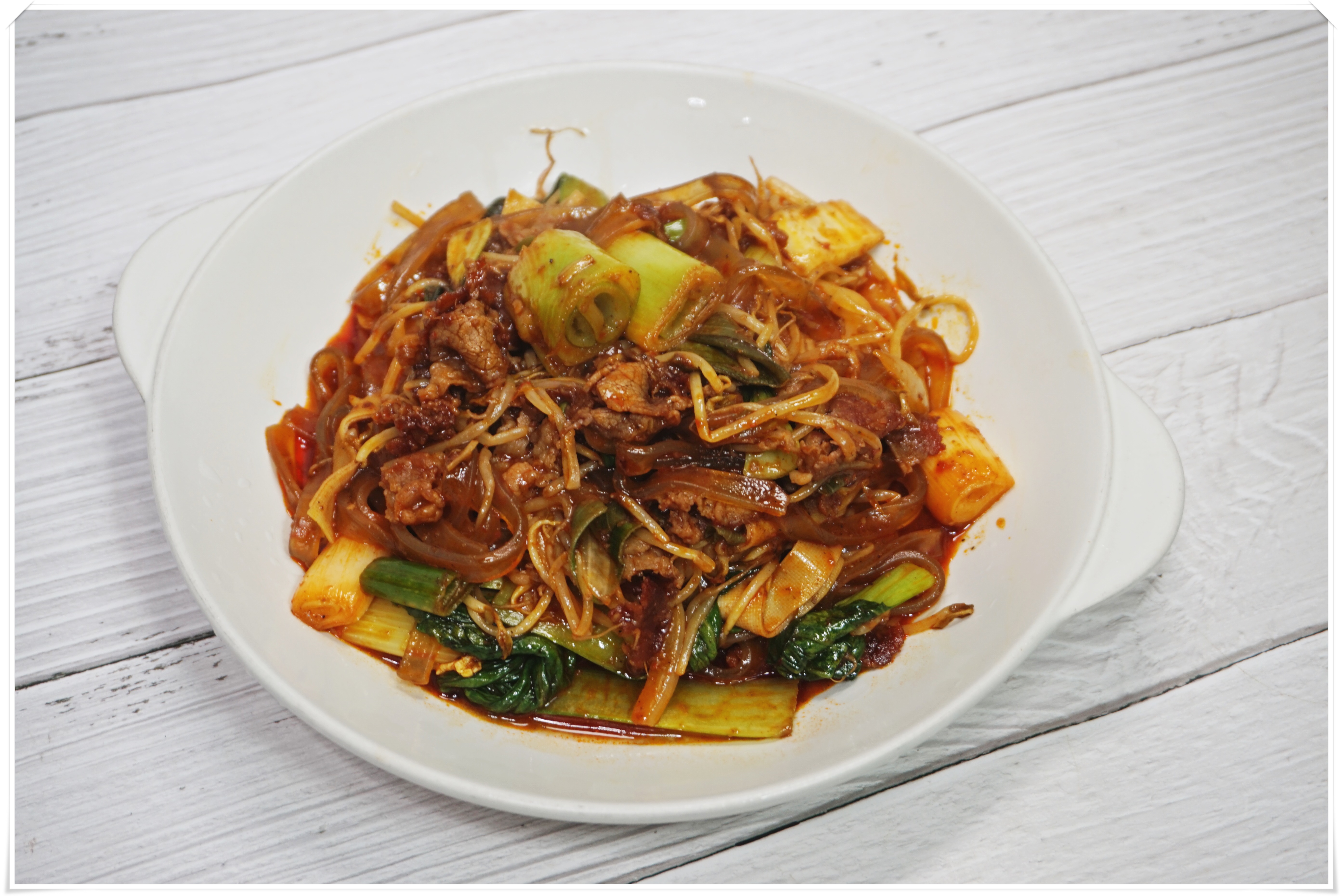 마무리로 두부피,숙주,당면,소스를 넣어주세요