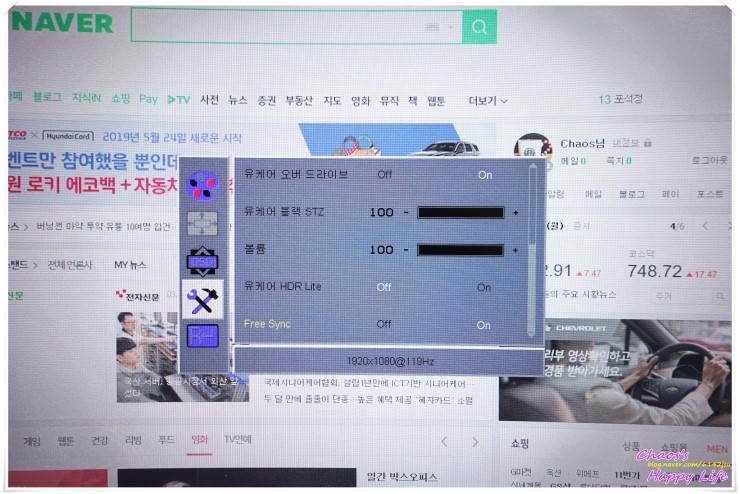 HDR Lite,프리싱크모드를 켜고 끌수 있습니다.